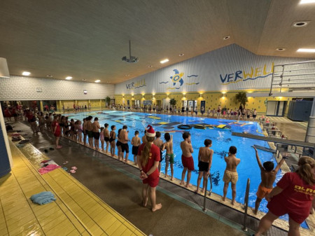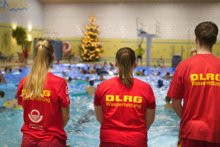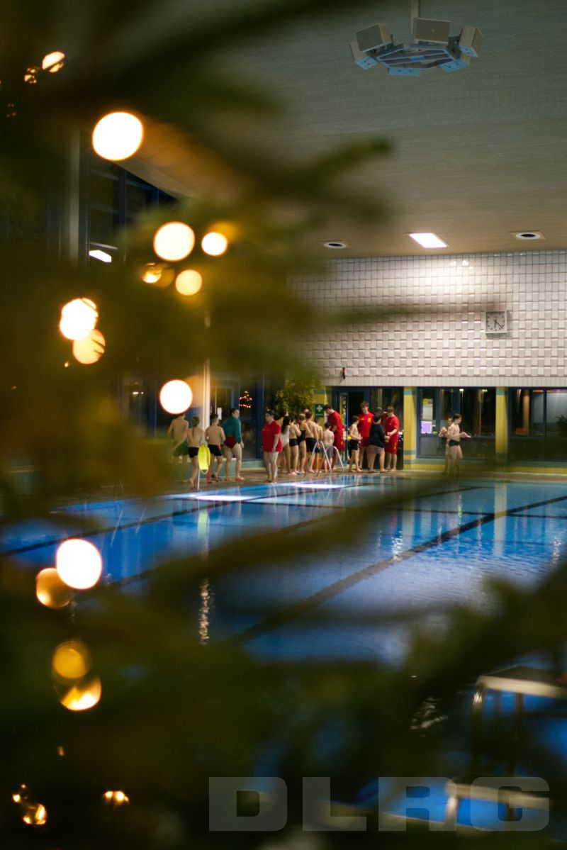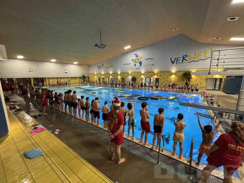 Am 8. Dezember konnten die kleinen Schwimmerinnen und Schwimmer der DLRG Ortsgruppe Verden im Verwell eine Weihnachtsfeier auf ihre ganz eigene Art abhalten. Knapp 130 Kinder und fast zwei Dutzend Betreuer mussten sich bei interaktiven Spielen im und am Wasser beweisen, bei der Floß-Fahrt beispielsweise, wo die Teilnehmer gemeinsam dafür sorgen müssen, dass alle Gruppenmitglieder mit einer Matte auf die andere Seite gelangen oder bei der sogenannten Materialschlacht. Im Anschluss gab es die Möglichkeit zum freien Spielen im gesamten Becken, wonach auf jeden Teilnehmenden eine Weihnachtstüte wartete.